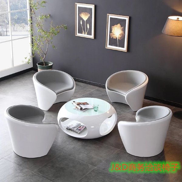 休闲区洽谈桌椅简约接待个性创意美容院会客单人沙发圆形茶几组合