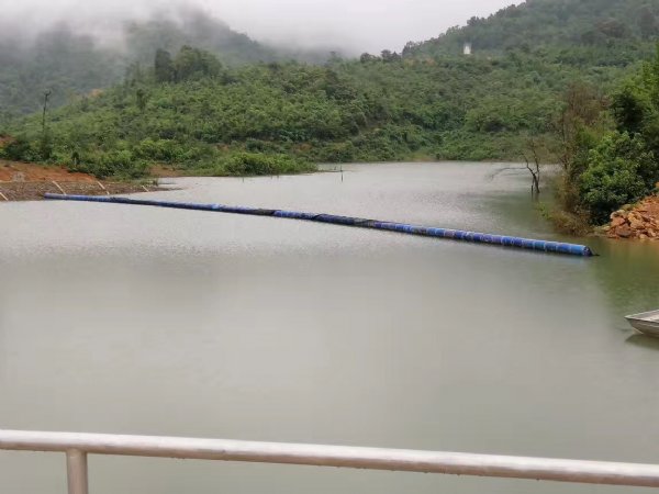 水口拦污工程采用直径60公分长度1.1米浮筒捆绑,主绳采用直径40mm高分子聚乙烯纤维绳,水下拦污网重锤连接,拦污效果好,省去了大量的人力物力,杜绝了取水口垃圾进入机组,效益明显!现已运行8年,运行效果一直良好,未出现过维修维护!
