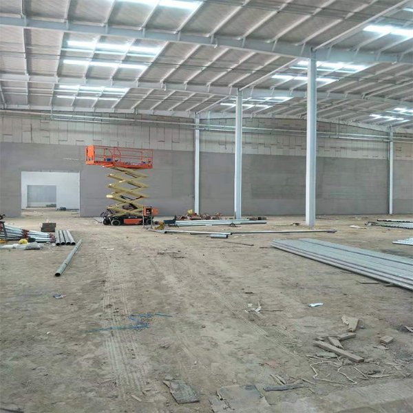 钢结构厂房外墙板的生产工艺是将水泥发泡、聚酯颗粒结合在一起,两面的面板是高密度的硅酸钙板,经过混合、模具..