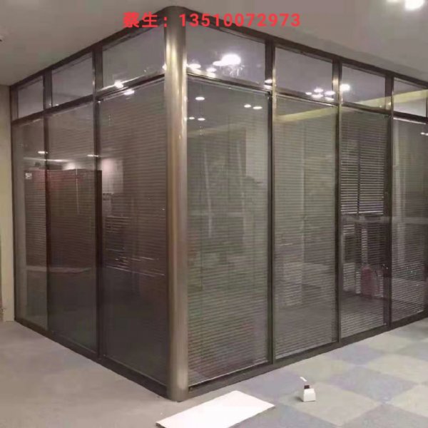 在深圳做的玻璃隔断的款式主打是双面玻璃中间带百叶窗高隔断的,也是双层玻璃夹百叶窗在玻璃里面,立柱安装旋钮..