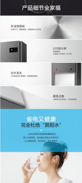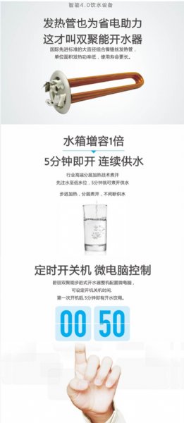 加热量50L/H,产水量60L/H,热水无需等待,可开水瓶取水