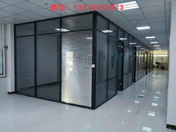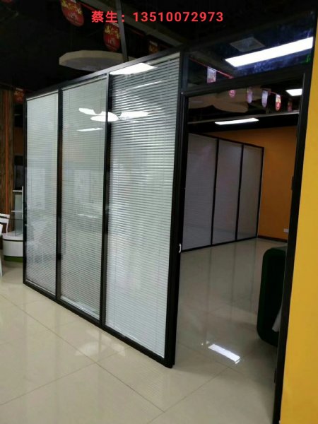 在深圳做的玻璃隔断的款式主打是双面玻璃中间带百叶窗高隔断的,也是双层玻璃夹百叶窗在玻璃里面,立柱安装旋钮..