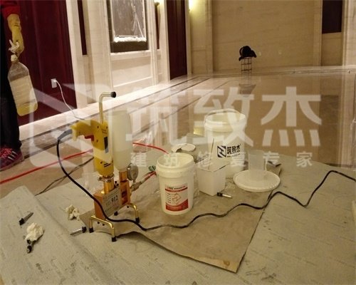筑致杰AB-5空鼓灌浆树脂,专门针对石材地面空鼓修复研制,广泛应用与混凝土、石材等空鼓修复,可通过低压及高压两种方式灌注,修复处理后可完全解决空鼓难题。 当然有些材料不适合用在空鼓的修复中,特别是含有挥发性溶剂的材料,因为这类材料在固化过程中会出现收缩情况,收缩会导致修复后的地面出现二次空鼓的发生。二次空鼓的修复难度更大,要求更高。
