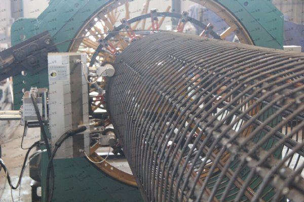 2.智能钢筋笼滚焊机加工设备操作简单、使用方便,可大大的降低劳动强度,减少人力的消耗,并能加工不同直径的钢筋笼,而且采用了PLC智能控制系统,来确保加工精度,有效的提高了加工精度和生产效率。