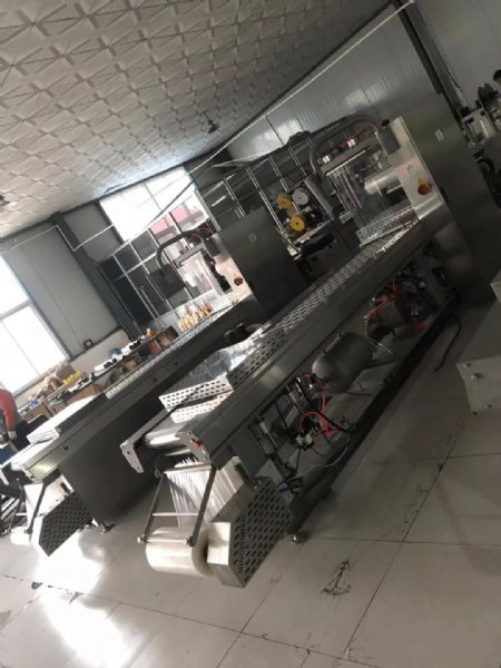 一种高效率的真空包装设备,改变传统的制袋包装。,把包材预热拉伸成想要的形状,放入产品,抽真空,附和上膜,去角分割,喷码,出产品。
