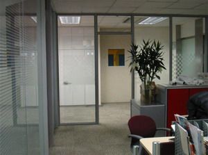在深圳做的玻璃隔断的款式主打是双面玻璃中间带百叶窗高隔断的,也是双层玻璃夹百叶窗在玻璃里面,立柱安装旋钮..