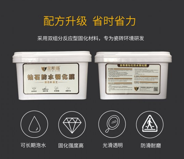 金斯盾钻石防水胶整体成膜防水耐磨,高温不化低温不裂,刚性成膜整体防水,坚硬如瓷。 - 广州金斯盾化工建材有限公司