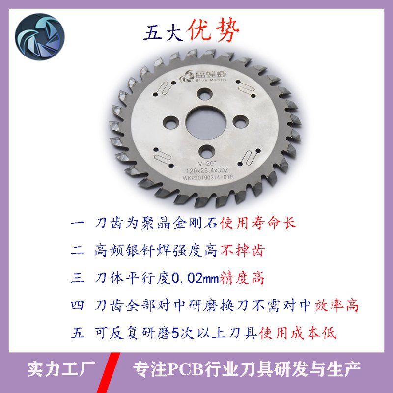 适用于国内及进口的半自动V-CUT机和数控V-CUT机,可用于各种系列的铝基板、铜基板 中高TG板、玻纤板、FR2、FR4、各种纸板的切割。 - 深圳蓝螳螂钻石刀具有限公司