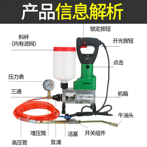 8. 配套使用材料范围广泛:聚氨酯,环氧树脂,丙烯酸树脂等无颗粒状黏度浆液材料均可使用。