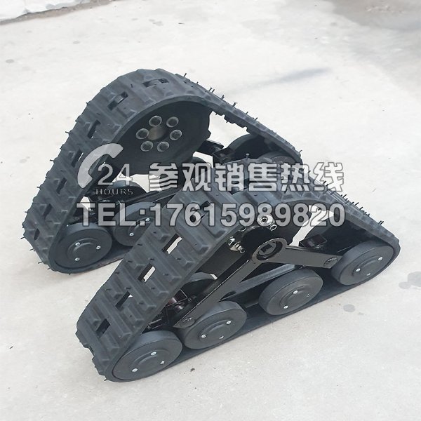 该底盘采用140mm宽履带,履带带体厚,内置高强度凯夫拉纤维,加强履带使用时抗拉承重能力,轮系使用高分子轮子。可定做各种底盘,履带、总成、 - 德州正鼎机械设备有限公司