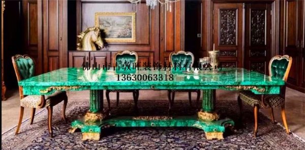 孔雀石作为奢石的代表石,起到画龙点睛的效果。我工厂经过几年的研发已经把孔雀石运用到不同的家具(家居)系列配套上了。