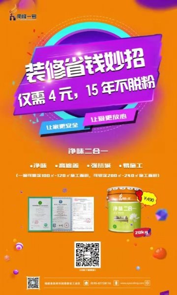 净味二合一墙面漆是一款经济型的多功能水性涂料,精选优质原材料,采用先进工艺制备而成。具备增强墙面遮盖力,强化产品的抗碱性能,创造了清新自然的家居环境。