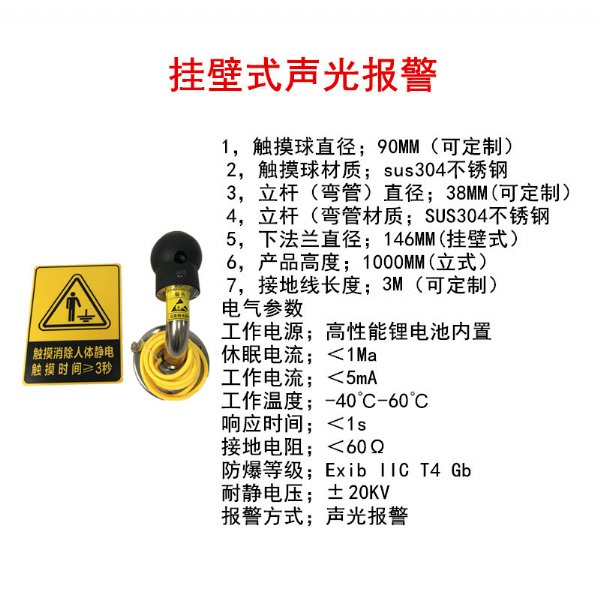 - 防爆人体静电释放器触摸式消除器球柱仪声光语音报警工业本安型