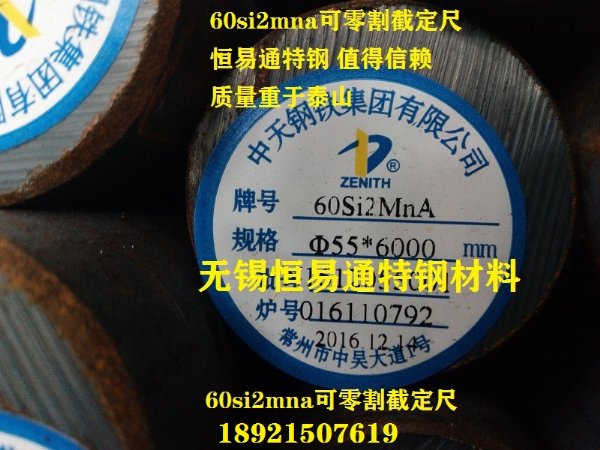 无锡恒易通特钢材料有限公司主要以现货的形式经营全国各大钢厂生产的南钢60Si2Mn特钢、合金钢、优质碳钢、模具钢、弹簧钢、轴承钢、齿轮钢、易切削钢、优特钢、高速钢、工具钢、不锈钢、军工钢及耐热钢、耐候钢等材料的南钢60Si2Mn圆钢、南钢60Si2Mn方钢、南钢60Si2Mn方坯、南钢60Si2Mn钢锭及南钢60Si2Mn锻件。可为用户加工生产各种材质型号南钢60Si2Mn热轧圆钢、南钢60Si2Mn冷拉圆钢、南钢60Si2Mn锻造圆钢。
