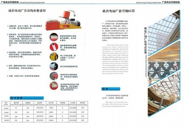 广告灯箱升降吊杆是一款适合用于高铁站,飞机场及大型商场,百货商场,星级酒店,飞机场,大型娱乐场所,专业悬挂广告牌、横幅、灯箱等设备而特别设计的智能升降设备。广告升降机构采用安全电磁刹车,安全电磁刹车确保钢丝绳不会下降。