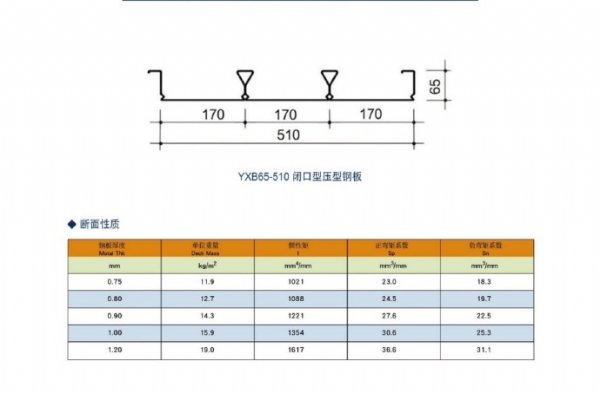2、YXB65-170-510闭口楼承板断面性质 - 山东胜博建筑科技有限公司
