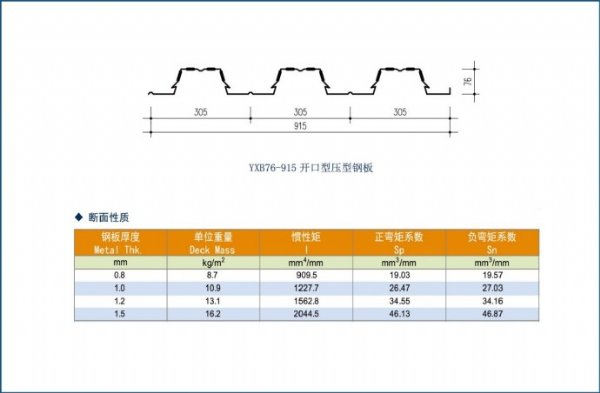 闭口楼承板特点: 1、 强劲的混凝土握裹:抗剪特殊设计的闭口肋型和腹板上的嵌扣,提供钢承板和混凝土间非..