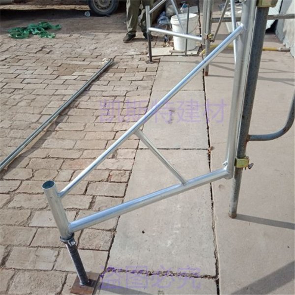 移动脚手架主要由主框,横框,交叉斜撑,脚手板,可调底座等组成,交叉拉杆又称斜拉杆。