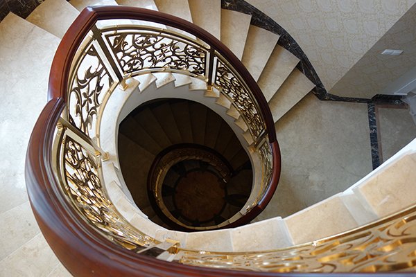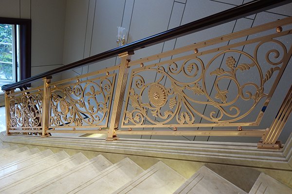 铜楼梯扶手的材料、形状及尺寸必须要给予使用者手的掌控以舒适的感觉,而且要使断面现状、色彩、质地等要符合形式美的要求,并与铜楼梯栏杆一起构成良好的装饰效果。