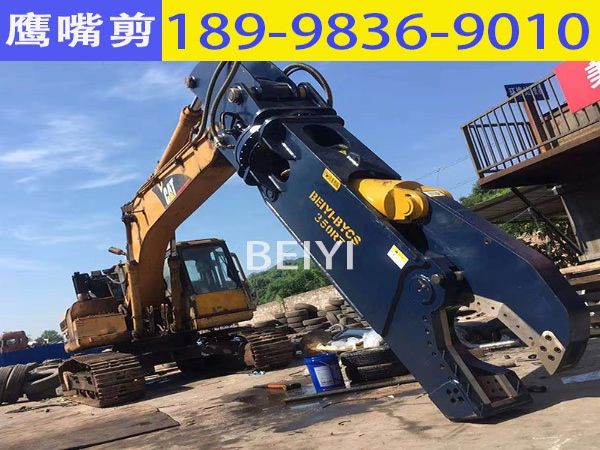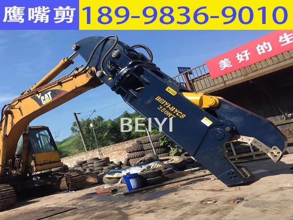 挖掘机拆车剪 挖机液压剪在拆解报废汽车领域中的使用挖掘机液压剪,又叫鹰嘴形液压剪切机,属于挖掘机属具。适..