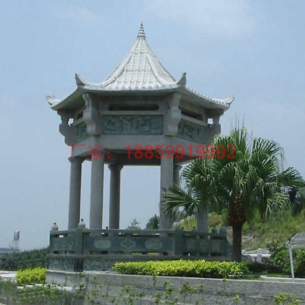 石亭子是指用石头加工而成的亭子,多建于路旁,供行人休息、乘凉或观景用。石雕凉亭体量小,平面严谨。自点状伞亭起,由简朴而庞大,根本上都是规矩多少形体,或再加以组合变形。没有围墙,从形状上来说,有四角亭、六角亭、八角凉亭,扇形凉亭,双层凉亭,三层凉亭,欧式凉亭等多种形状。其材质多选用青石、花岗岩等。