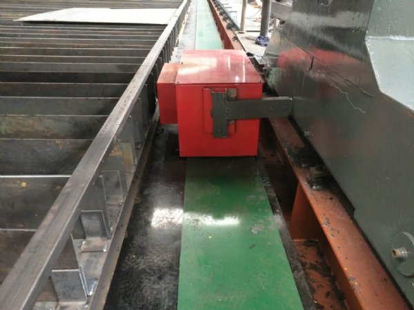 方形吸风道、滑动吸风小车是吹吸式切割平台的重要组成部分。工作时,密封皮带在管道负压的作用下,紧紧地贴附在方形吸风道上方,起到紧密作用。在滑动吸风小车处,小车内有两个滚轴,密封皮带从小车内穿过时被顶起。这样烟尘通过小车吸风口进入方形吸风道,进入净化器净化。