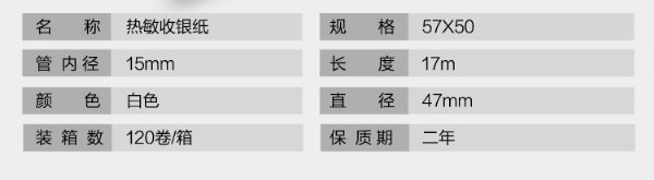 57x50热敏纸58mm卷式纸收款纸打印纸