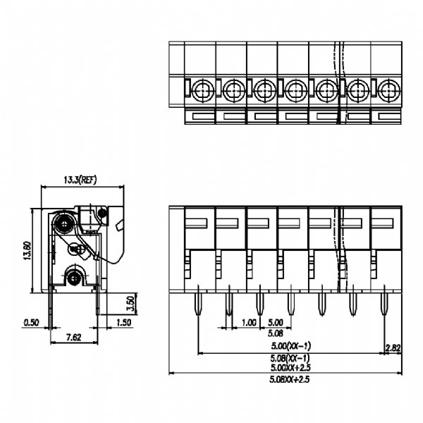 间距:5.0mm(.197)5.08mm(.200)