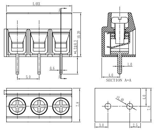 螺钉式PCB接线端子,结构设计兼顾了接线方便、螺钉连接牢固的特点。