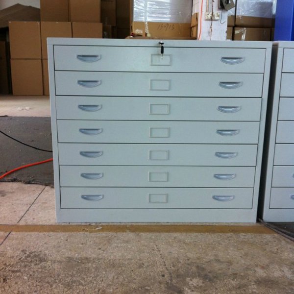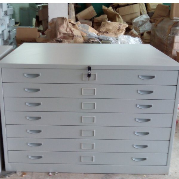 1. 图柜是图纸、字画珍藏、保管*理想的“家”。 垂直图柜顶盖配以德国气动伸缩杆,柜底加特重滚珠路轨。顶及柜体前半部分均可以打开。四斗图柜和七斗图柜配有两个塑胶拉手,抽斗内配一压板用合页锁在抽面内部,用来压住图纸,在抽拉抽斗时不会弄乱图纸,方便存取。