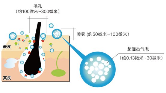 而Mirable秘乐波花洒是不需要添加美容液的,因为喷雾模式下产生的超细气泡水只有0.13微米,1cc(1cm3小骰子)水中含有约1400万个气泡,这种气泡可轻松渗透到毛孔和皱纹中,清除皮肤毛孔深处污垢并使其更加干净。