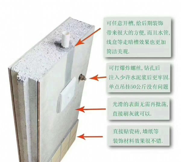 具有良好的隔音效果,其隔音效果符合国家住宅的隔音要求,大大高于其他砌砖墙体的隔音效果。