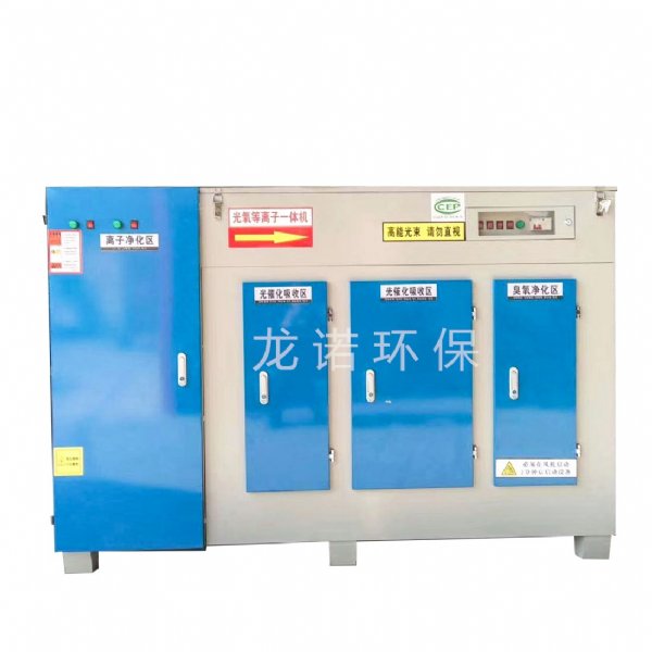 等离子光氧催化废气处理一体设备是德国高新技术,它能有效地清除空气中的细菌、可吸入颗粒物、硫化合物等有害物质。其工作原理是置于设备内的离子发生装置发射出高能正、负离子,它可以与空气当中的有机挥发性气体分子(VOC)接触,打开VOC分子化学键,分解成二氧化碳和水;对硫化氢、氨同样具有分解作用;离子发生装置发射离子与空气中尘埃粒子及固体颗粒碰撞,使颗粒荷电产生聚合作用,形成较大颗粒靠自身重力沉降下来,达到净化目的;发射离子还可以与室内静电、异味等相互发生作用,同时有效地破坏空气中细菌生存的环境,降低室内细菌浓度,并将其完全消除。