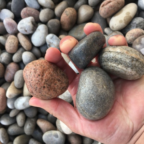 鹅卵石(砾石)外观:天然的呈椭园状杂色,机械加工的呈接近球状、粉白色