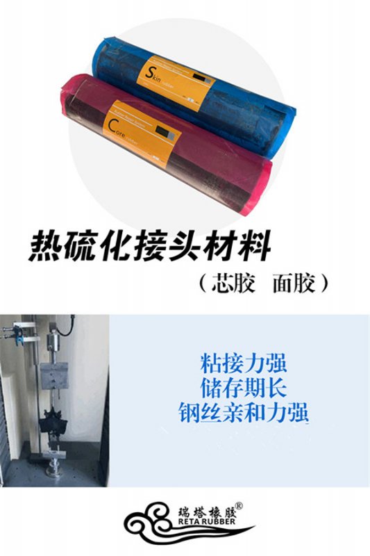 输送带热接头材料,未硫化覆盖面胶。热硫化芯胶可以填充、包裹皮带的芯层织物、钢丝绳,形成大的抓附力,从而避免开胶、抽芯等情况,经过填充后的皮带修补部位结构紧密,承受复杂应力的xiao果geng好。