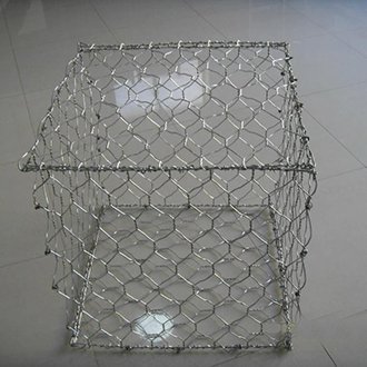 石笼网由高抗腐蚀、高强度、具有延展性的低碳钢丝或者包覆PVC的以上钢丝使用机械编织而成,使用该网制作而成的箱型结构就是石笼网箱。根据ASTM和EN标准,所使用的低碳钢丝直径根据工程设计要求而不同。一般介于2.0-4.0㎜之间,石笼网钢丝的抗拉强度不少于38kg/㎡,金属镀层重量一般高于245g/㎡,石笼网片的边缘线直径一般要大于网线直径。其双线绞合部分的长度不得小于50㎜,以保证绞合部分钢丝的金属镀层和PVC镀层不受破坏。