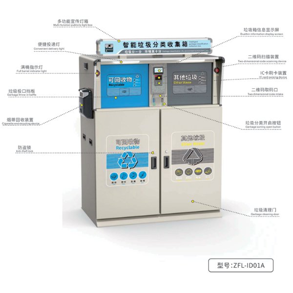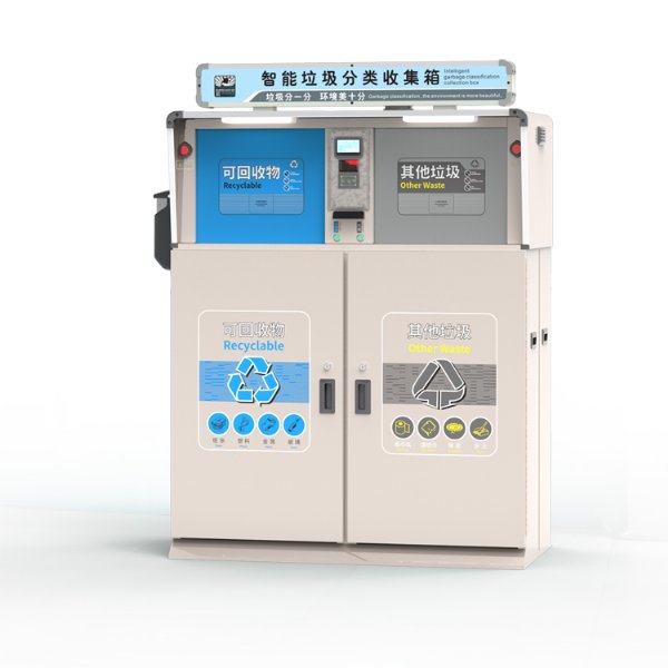 智能垃圾分类箱具有满载警示预警、多用途LED显示屏、智能投放装置、投口防夹手功能、温度检测功能、便捷投递..