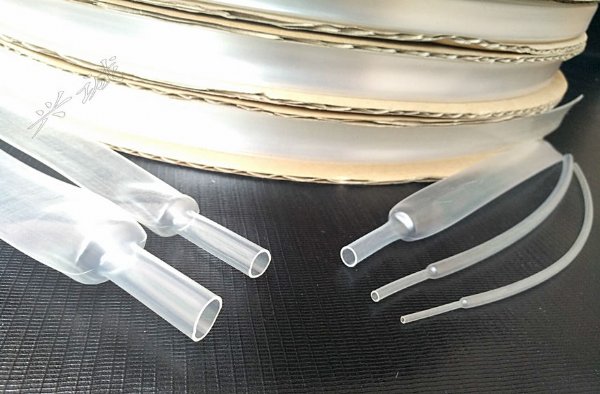 PE透明热缩管是幅照交联聚烯烃复合物(EVA)制成之高品级热缩套管,额定耐温105℃,适用于线材加工、扎束绝缘、端末绝缘、防绣包覆等一般商品用途