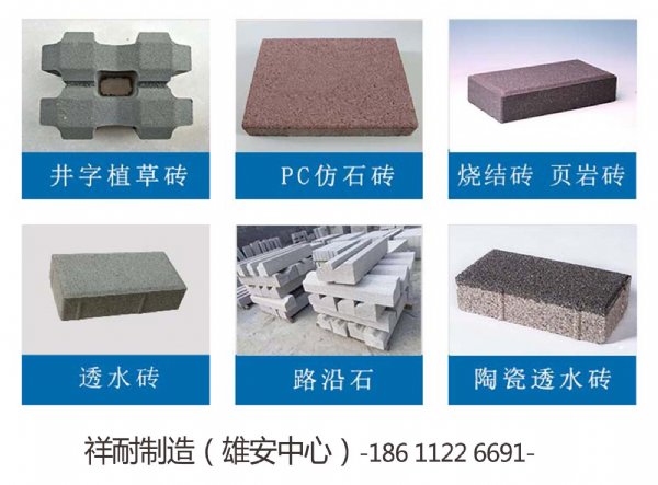 主营产品:透水砖、便道砖、植草砖、广场砖、路沿石等百余种路面材料水泥制品。