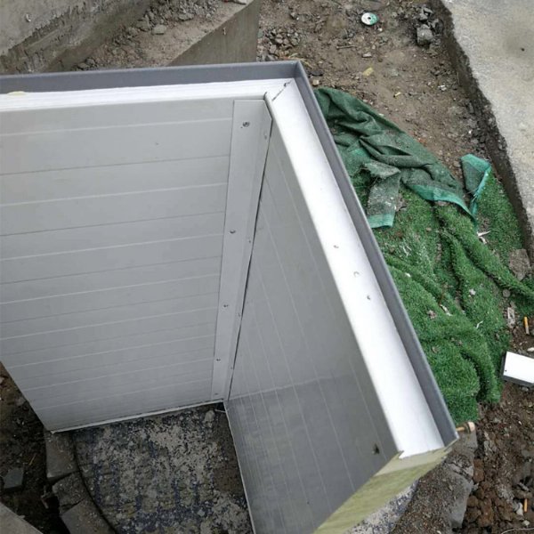 变电站外墙板产品设计要求:10公分厚聚氨酯封边横装夹心板,有效宽度:1000mm、硬质聚氨酯发泡封边,增加企口强度,防止企口变形,并且防水; 外板厚度不低于0.73Mm铝镁锰、氟碳pvdf涂层,白灰色、板面小波纹;内板厚度不低于0.53Mm彩钢板,聚酯pe涂层,岩棉容重不低于100克。