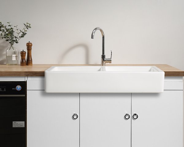 尚家卫浴出口欧美大尺寸农舍风格双盆陶瓷厨房水槽