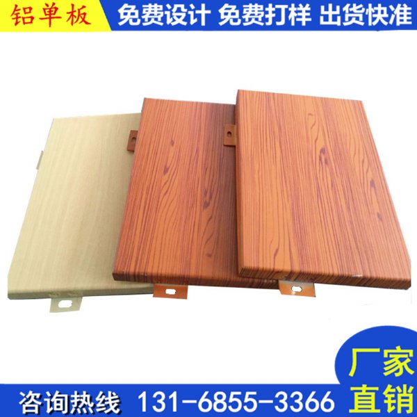 4D仿木纹铝单板与实木对比,无论刚度、硬度等各项指标都完全*,并且可加工成平面、弧面、球面等各种复杂形状,在满足各种造型设计要求时,还具有很强的隔音。隔热性能。渐渐成为金属幕墙装饰材料中的主流材料之一。 - 佛山市铝盛金属制品有限公司