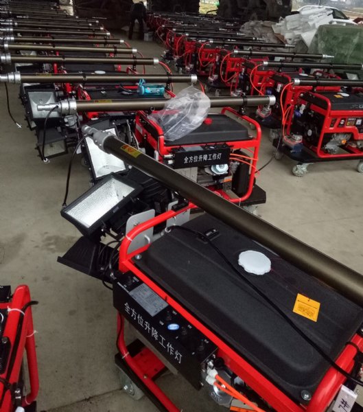3、工作时间:灯具可直接使用发电机组供电,也可接通220V市电长时间照明;采用发电机组供电一次注满燃油连续工作时间可达13小时。