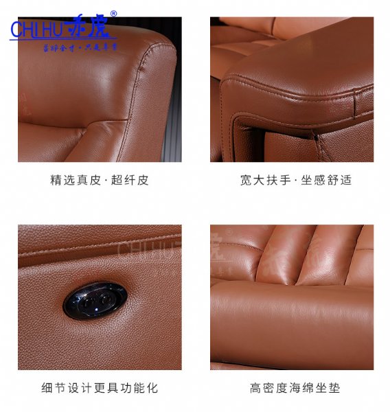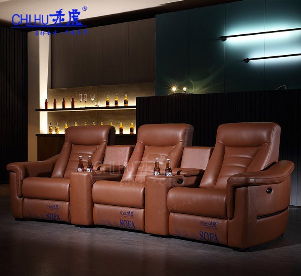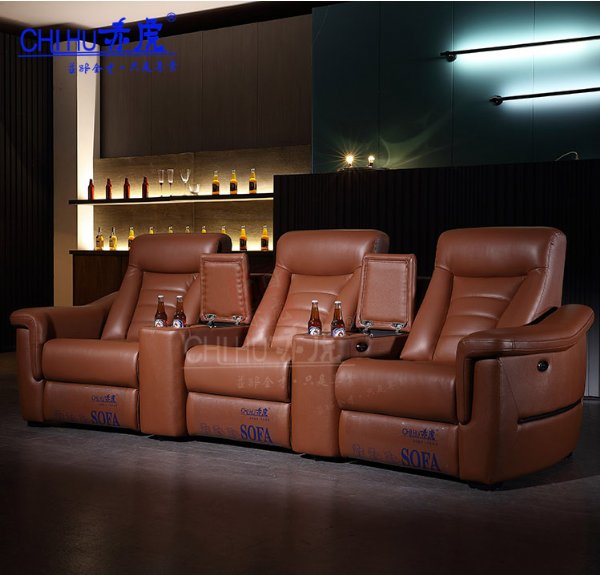 CH-696是我们工厂开发的一款豪华的家庭影院沙发,采用符合人体功能学的设计弧形,让您躺着舒心的看一场电影。