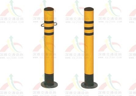 由钢管与法兰盘组成,钢管外贴黄黑反光膜,起到反光警示作用。配有锁芯的立柱,使得在需要的时候可打开锁具,将立柱提起并移动在任何合适的地点,供车辆通行。在交通完毕之后即可将立柱重新置于底座上,上锁后即可避免其他车辆对于自有车位的侵占。可以在车库前、或者其他认为重要的场合前设置,起到保护好车库大门、避免暴力破坏的作用。