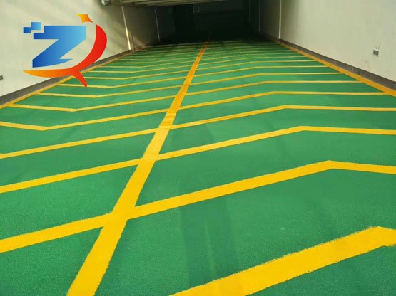 3、抗压层施工:底涂干燥后整体批刮止滑抗压中层,力求平整,如果地面凹洼不平,应先用水性环氧砂浆填平干燥后整体批刮止滑抗压中层3Mm;