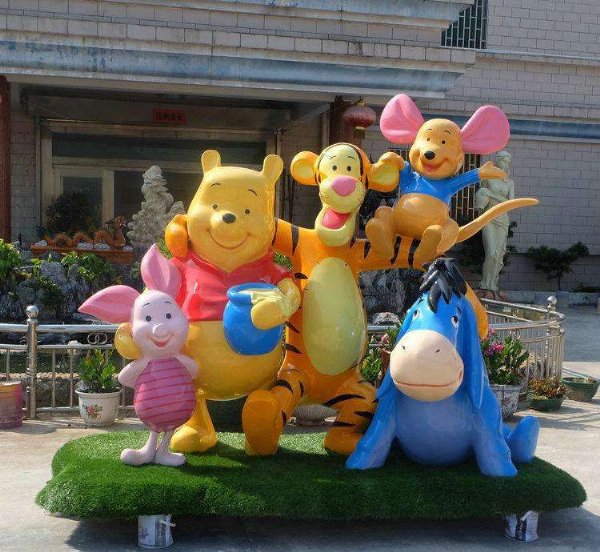 玻璃钢卡通人物雕塑应考虑材料工艺特点。玻璃钢易于成型优美的流线型制品,突出作品的时代感,设计时可采用圆弧流线型。由于玻璃钢轻质高强,可制作动感强支撑面积小的作品。制作采用手糊方法。根据雕塑的形状和特点,从便于成型与脱模的角度出发,将模具分解为若干个单元进行翻制。依此成型并将它们组合成整体。*后整体处理涂装,卡通人物雕塑成品生产完成了。