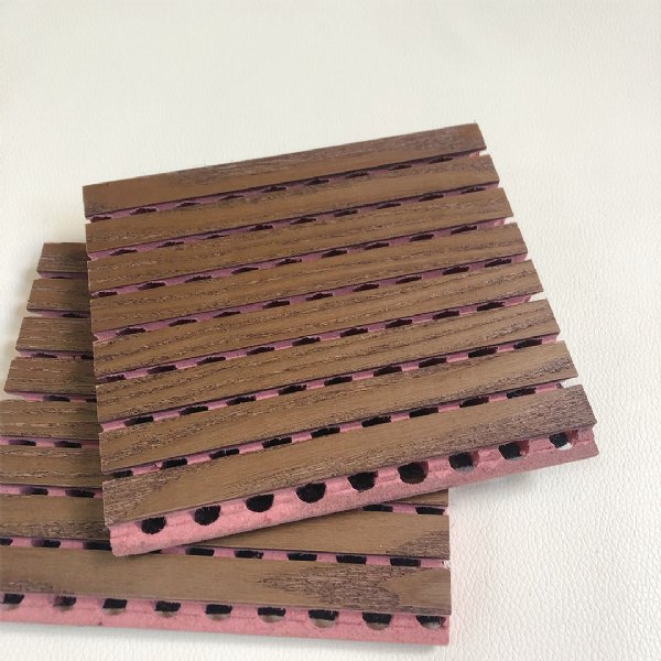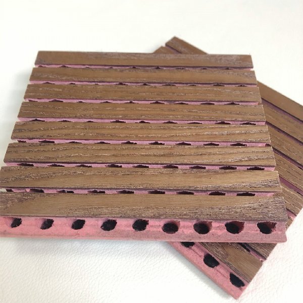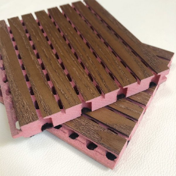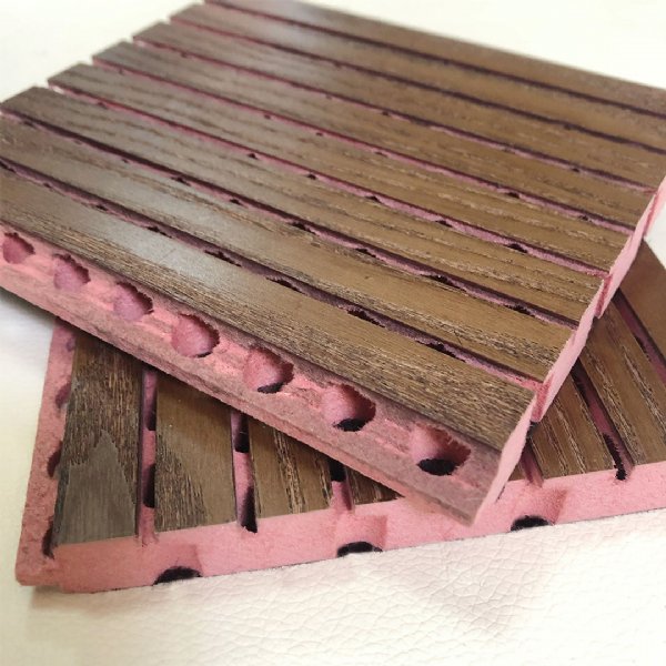 木质吸音板是一种在密度板的正面开槽、背面穿孔的狭缝共振吸音材料、槽木吸音板对吸声频谱选择性很强,对中低频有很好的牺牲性能。若在吸声结构后空腔适量吸音棉可提高中、高频吸声效果,标准化模块设计,采用插槽、龙骨结构,安装简易,常用于墙面或天花装饰。吸音板适用于庭影院、影剧院、录音室、录音棚、播音室、试音室、商务办公厅、电视台、电台、多功能厅、会议室、演播厅、音乐厅、钢琴房、大礼堂、体育馆等对音质要求较高的场所。