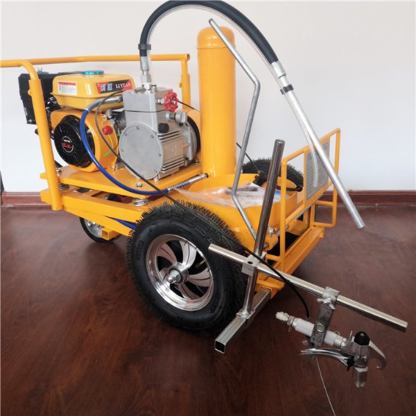 适用范围:地下车位、小区厂区标线、少量路面道路等各种常温标线施工;动力:5.5HP汽油发动机;核心泵体:进口精密液压柱塞泵大流量:12L/min;工作压力:21Mpa;喷幅宽度:50-500mm(双枪);喷幅厚度:0.2-0.4mm;净重:110kg;尺寸:长1700 mm×宽750 mm×高1100mm;