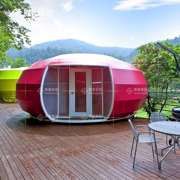 雅奢旅屋这款苹果形主题帐篷属于个性化的定制产品,从设计到工厂制作,再到运输搭建,做到真正的了专业和高效。而除了其独特的造型受人青睐外,在地台、地板、墙体、门窗等方面,雅奢旅屋也可以提供多种不同材质选择,让同一种帐篷酒店可以呈现多种不同的风格类型!苹果形主题帐篷的框架使用镀锌钢管,加喷涂耐候粉防腐蚀处理,牢固而且美观。覆盖的篷布则使用白色PVC篷布或者透明PVC篷布。户外能抗8-10级大风,10年使用寿命。穹顶苹果形主题可选规格类型多,外形美观,款式新颖,十分适合应用于景区营地、特色小镇、生态农庄中的帐篷酒店住宿、户外餐饮、休闲花园。而大规格的苹果形主题帐篷同样适用于各种大型活动的举办、营地住宿、特色餐厅、游乐空间等不同领域!